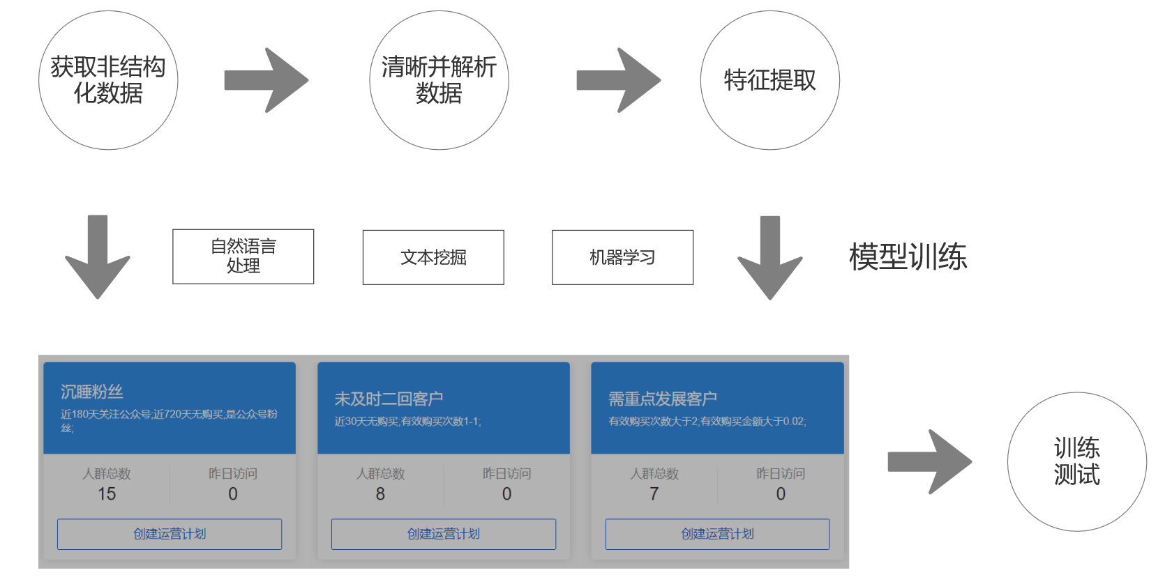 我们建立用户模型的主要步骤是获取用户数据并对数据清洗,提取特征并将清洗后的数据放入模型进行训练测试。