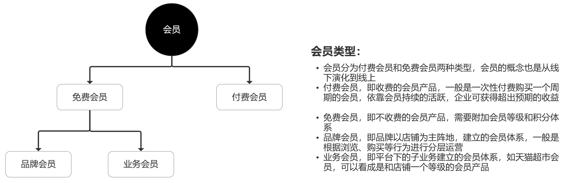 在这些产品中,会员类型主要分为免费会员与付费会员两种类型,而免费会员又可细分为品牌会员与业务会员两种类型。