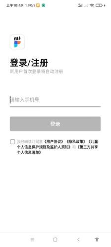 打开Filmly应用后,进行注册或登录操作。可以使用手机号接收验证码的方式进行注册。