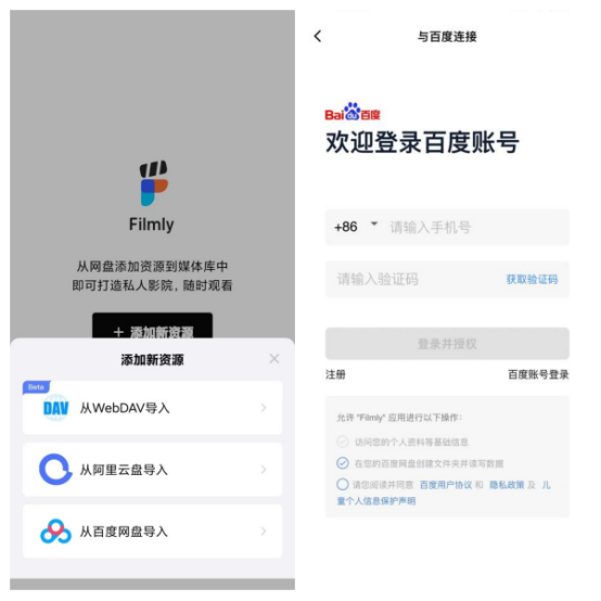 登录后,选择绑定自己的网盘账号(如百度网盘、阿里云盘)。在Filmly应用中,点击“添加新资源”按钮,按照提示输入网盘账号和密码进行绑定。