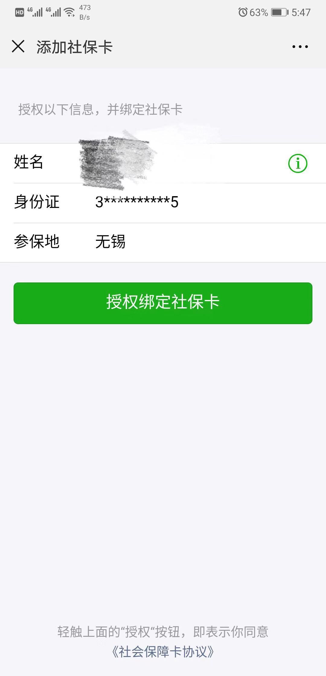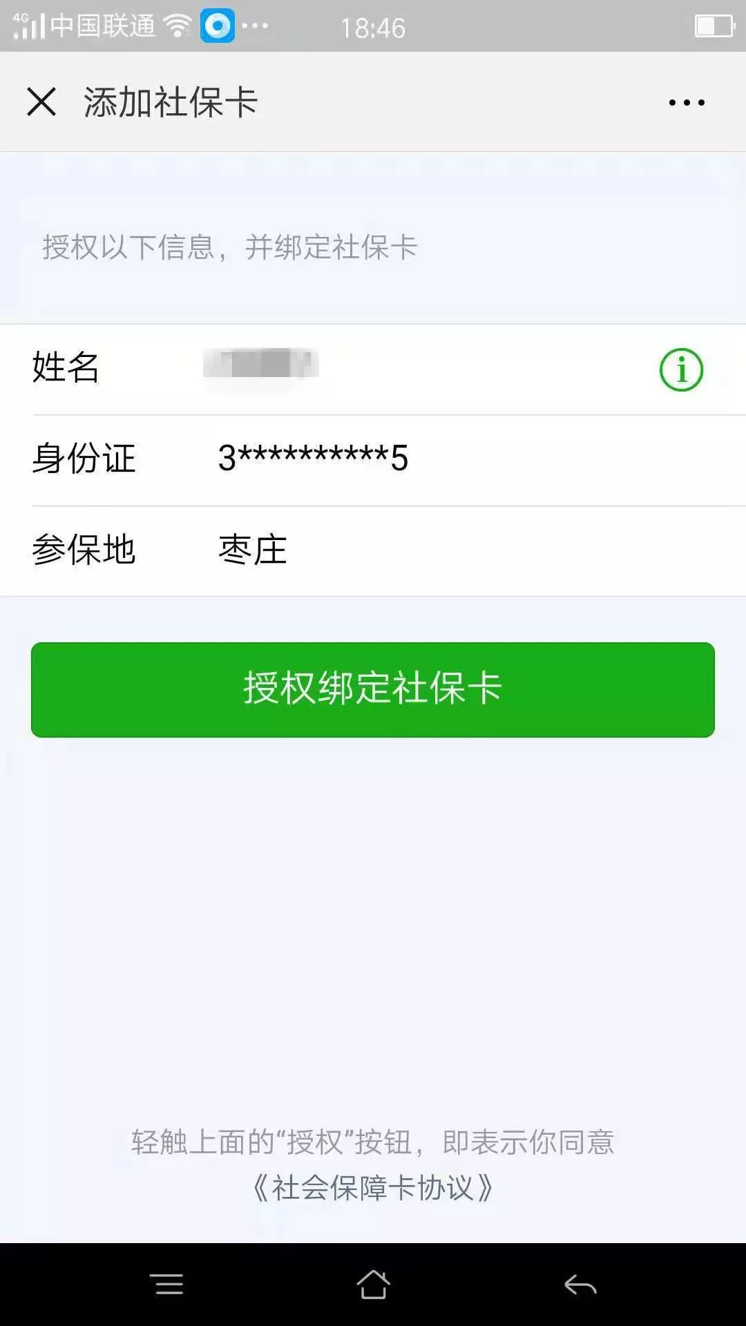 根据页面提示点击授权绑定社保卡号进行社保信息验证