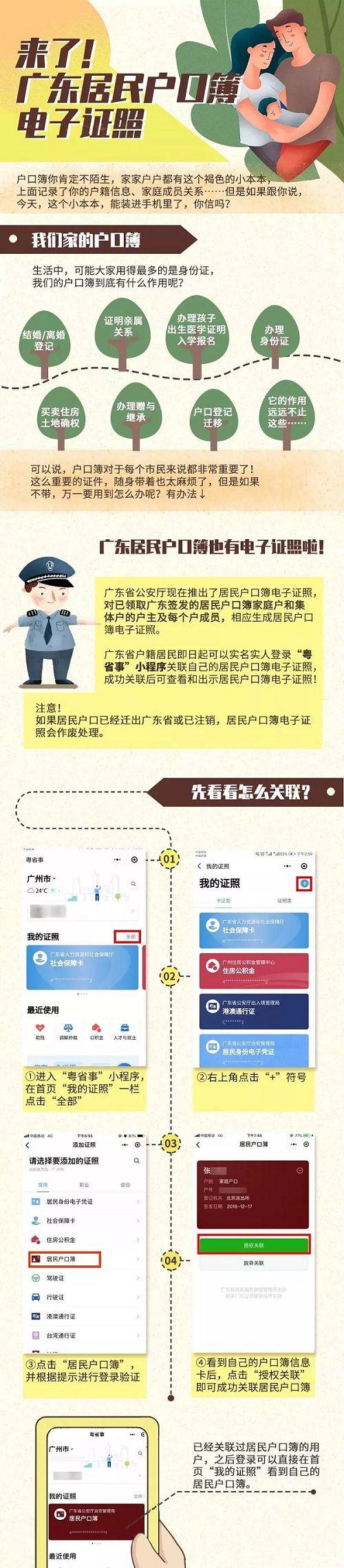 近日,广东省公安厅推出了居民户口簿电子证照,对已领取广东签发的居民户口簿家庭户和集体户的户主及每个户成员,相应生成居民户口簿电子证照。