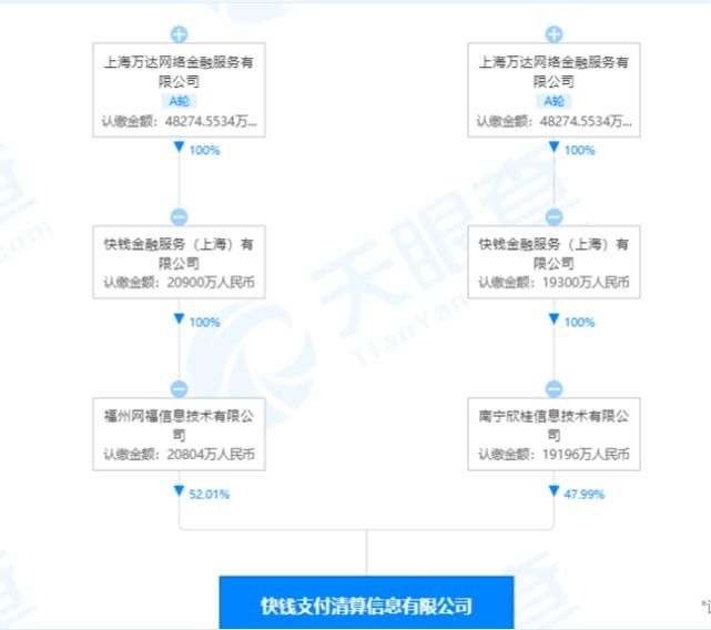 目前,快钱支付由上海万达网络金融服务有限公司100%控股,公司的最终受益人和疑似实际控制人可追溯到王健林。成立至今,快钱支付共计进行了两轮融资。2005年8月,DCM中国进行了100万美元的A轮融资。2014年12月,万达集团进行了20亿人民币的并购。