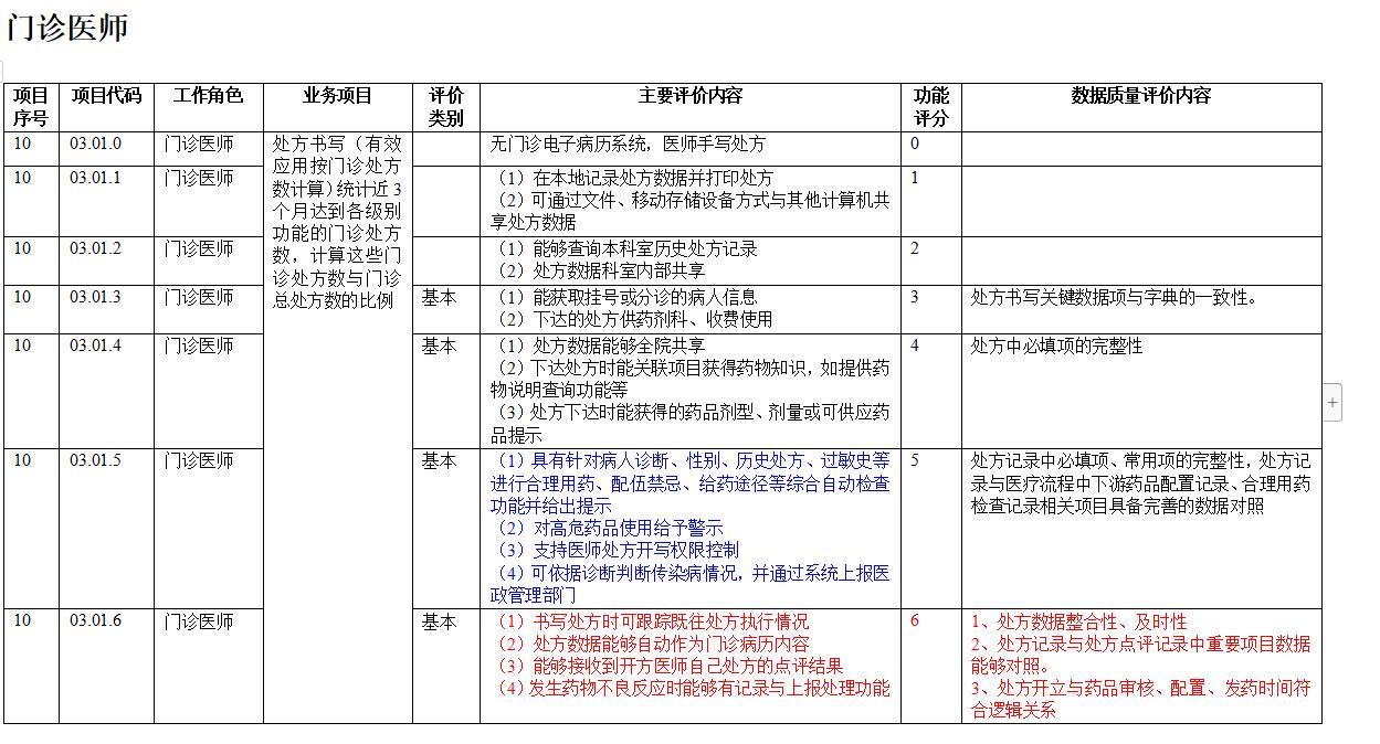 电子病历系统应用水平分级评分标准,;数据质量情况的评估内容在“数据质量评估内容”一栏中给出了基本计算的规则,针对每个项目和等级的具体内容需参照《数据质量评估项目表》,这个表每年均会根据数据质量的重点管理要求进行修订。