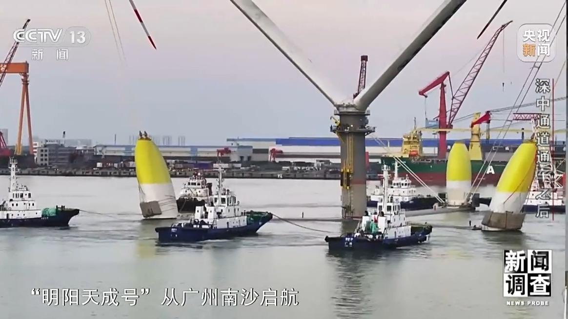 2024年8月11日,“明阳天成号”从广州南沙启航,沿着广州港出海航道驶入珠江出海口。最高高度达219米的“明阳天成号”是深中通道正式通车后首次通行的海上超高特种装备,也是深中通道建成以来通行的最高尺度海上平台。