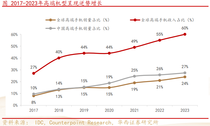 而随着高端智能手机占比逐步提升,苹果、小米、三星等手机厂商陆续将钛合金材料应用至其旗舰机型作为卖点,钛合金中框作为智能手机硬件高端化重要变革方向,旗舰机型钛合金产品渗透率或将持续提升。