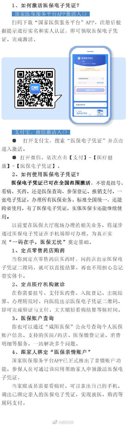 2月24日,咸阳医保官方微信公众号消息,自2020年11月2日起,咸阳正式启用医保电子凭证以来,截至目前,全市医保电子凭证激活用户已过百万人,平均每4个参保人中就有1人激活医保电子凭证。医保电子凭证支付功能可在全市所有的定点医疗机构和定点零售药店使用。这意味着,参保人就医购药不用携带实体医保卡,刷一刷医保电子凭证即可轻松结算。如何激活医保电子凭证?如何使用医保电子凭证?