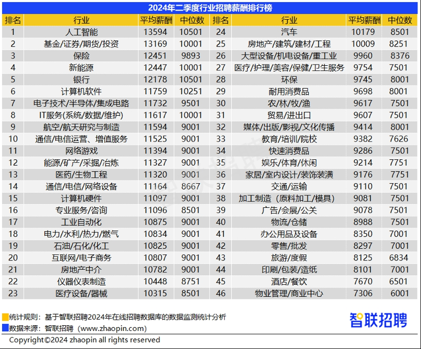 行业分布来看,人工智能行业位居薪酬榜首,平均招聘月薪13594元,薪酬同比增长5%。人工智能工程师更是以平均招聘月薪为22003元排在各职业第一。