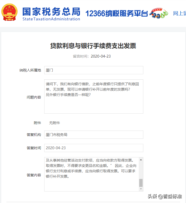 厦门税务局答复:
