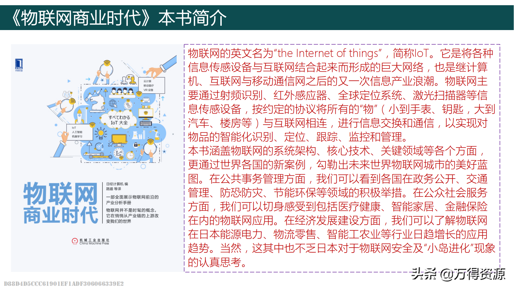 《物联网商业时代》《IoT变现-物联网创利模型和全新实践》《图解物联网》《无处不在的物联网装置》《物联网开发与应用》《医疗健康物联网白皮书(2020)》《医疗物联网安全研究报告(2021年)》《面向物联网的数据基础设施白皮书》《物联网+制造业向智能服务转型的新引擎》【资料领取方式见文末】