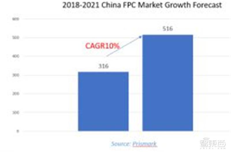 全球19年FPC市场规模为138亿美元,CAGR逐步在放缓,中国18-21年的复合增长率为10%,远高于全球。