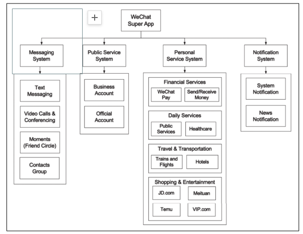 而微信,作为最早的“super app”之一,也是使用频率最高的移动应用程序。自2011年推出以来,微信逐步加入了各种与商业相关的功能。迄今为止,已经发展成为一个全面的平台,几乎涵盖用户日常生活的所有方面,如多媒体消息、社交网络、移动支付、数字营销、城市服务等。