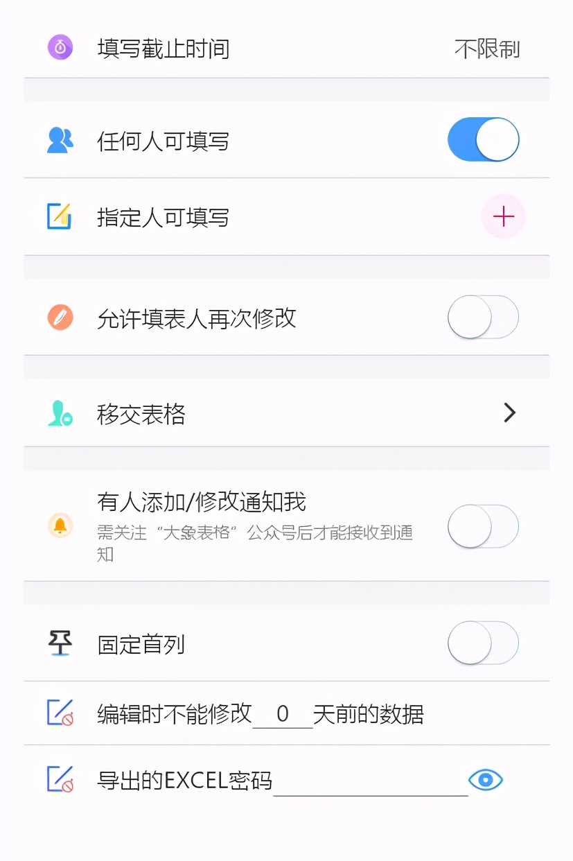 微表(大象表格)除了这几种设置还有更丰富的权限管理内容,多种权限的交叉设置让表格数据更加安全。