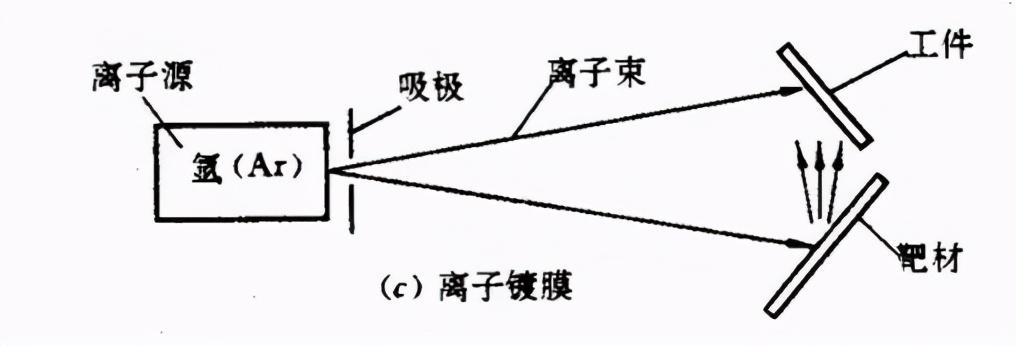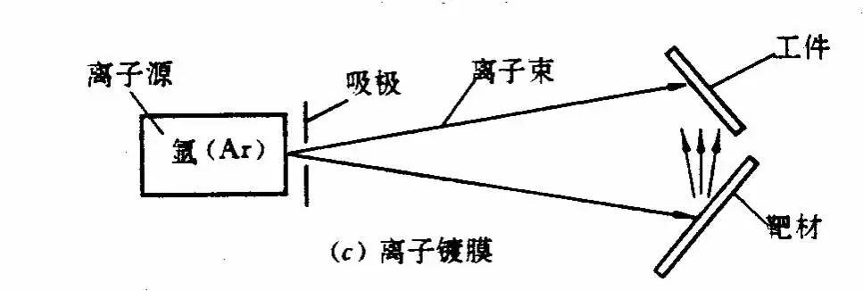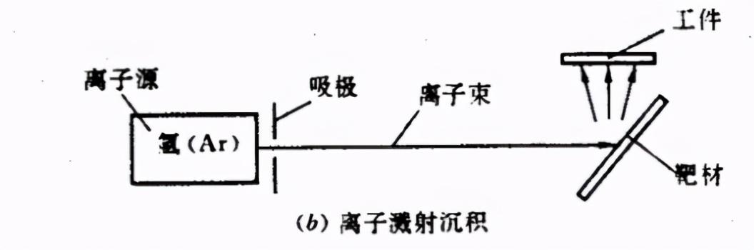 采用能量为0.1~5keV的氩离子轰击某种材料制成的靶材,将靶材原子击出并令其沉积到工件表面上并形成一层薄膜.实际上此法为一种镀膜工艺 .
