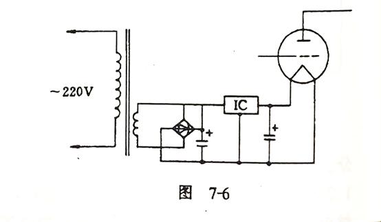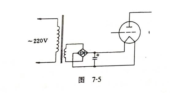 有些品质的功放机,其灯丝采用纯净的直流供电方式,这样可取得更好抑制交流干扰的效果。如图7-5所示。