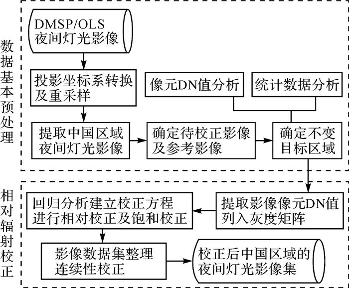 图 1 夜光遥感影像相对辐射校正流程Fig. 1 Flowchart of relative radiation correction calibration for night-light remote sensing image