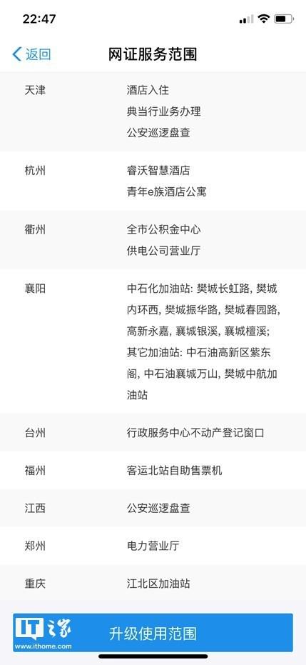 如今支付宝身份证的试营进一步扩大,新增对江西、重庆、襄阳、台州等19个地区的支持。你可以在支付宝的卡包-证件-电子证件 中添加网络身份证或者其他电子证件。目前的电子身份证可以代替一部分实体证件的功能,比如酒店入住、公安盘查、不动产登记、加油等功能,后续可能会加入更多使用场景。