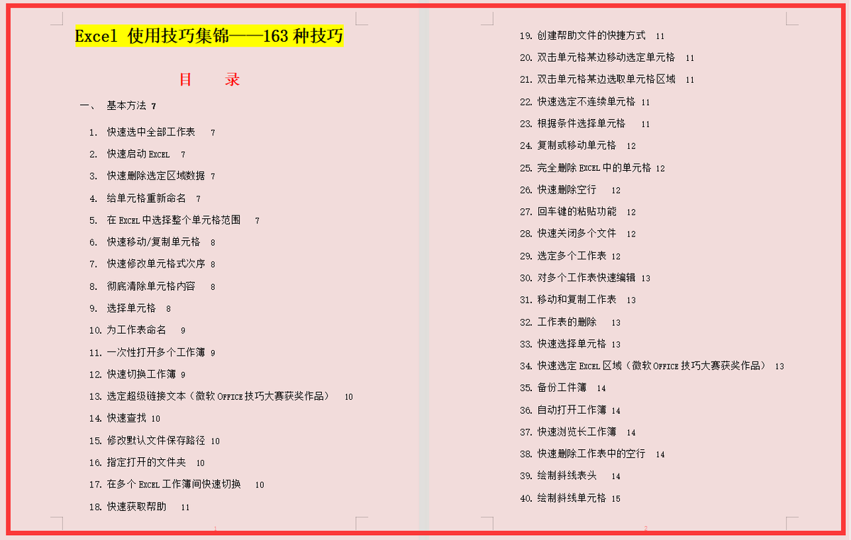 别慌,遇到困难我们就要积极解决,小编整理了163种Excel使用技巧,非常全面,拿出来跟你分享,相信能够帮助到你,有电子版哦!
