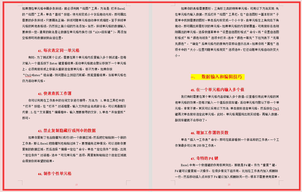 篇幅有限,只是展示了一部分,完整电子版共50页,财务人员工作中必不可少的Excel操作技巧,希望能帮到你!
