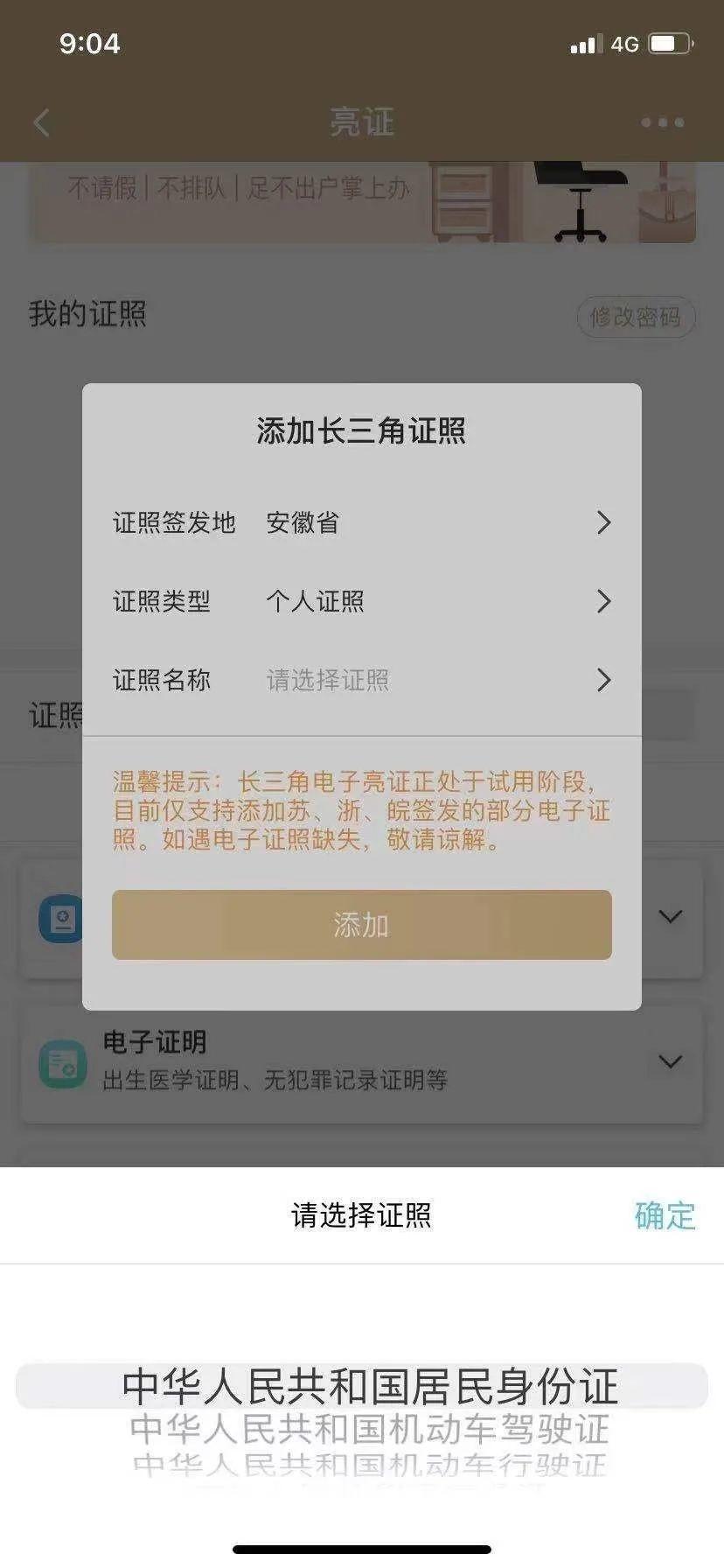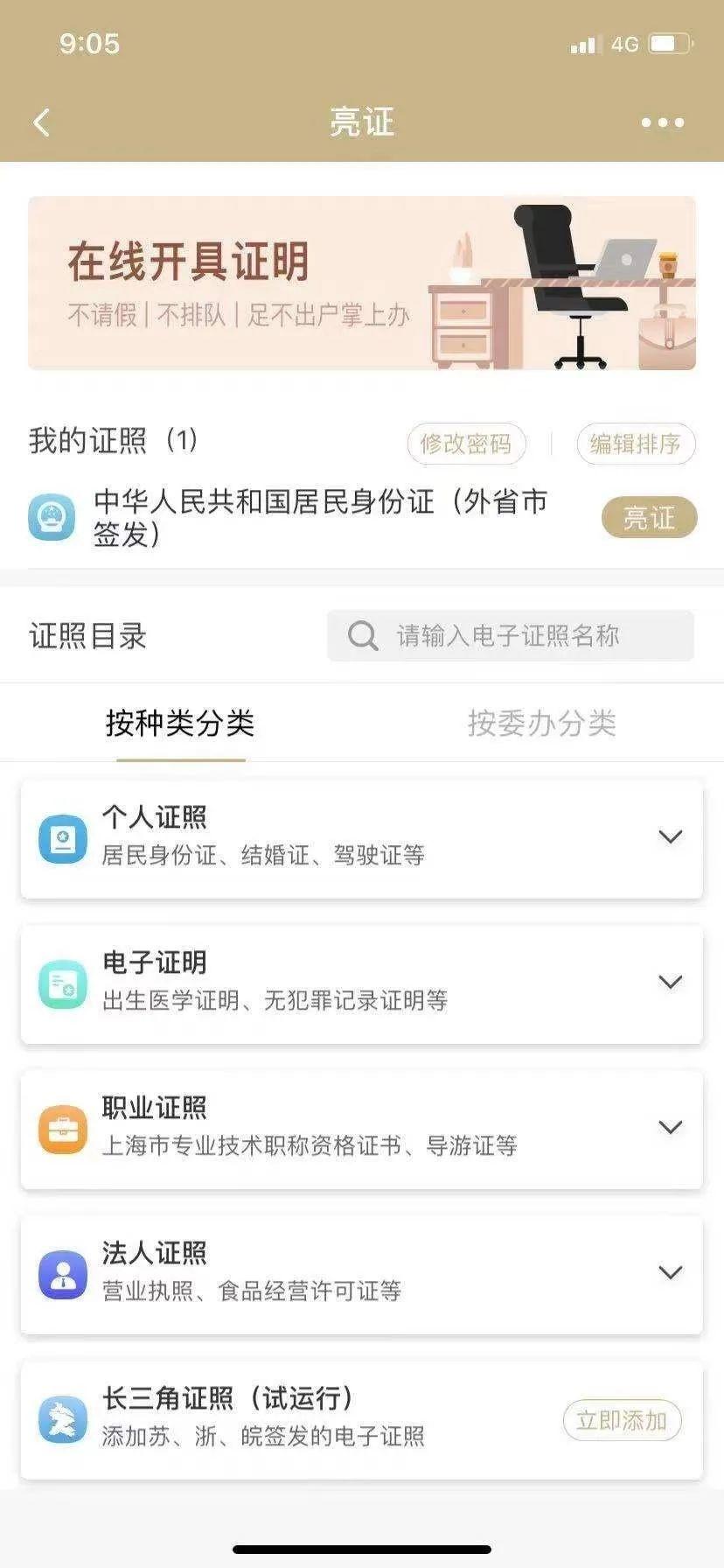 长三角居民9类个人证照在随申办“亮证”的操作方法