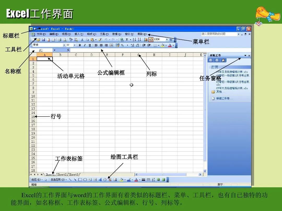 Excel工作界面 标题栏 菜单栏 工具栏