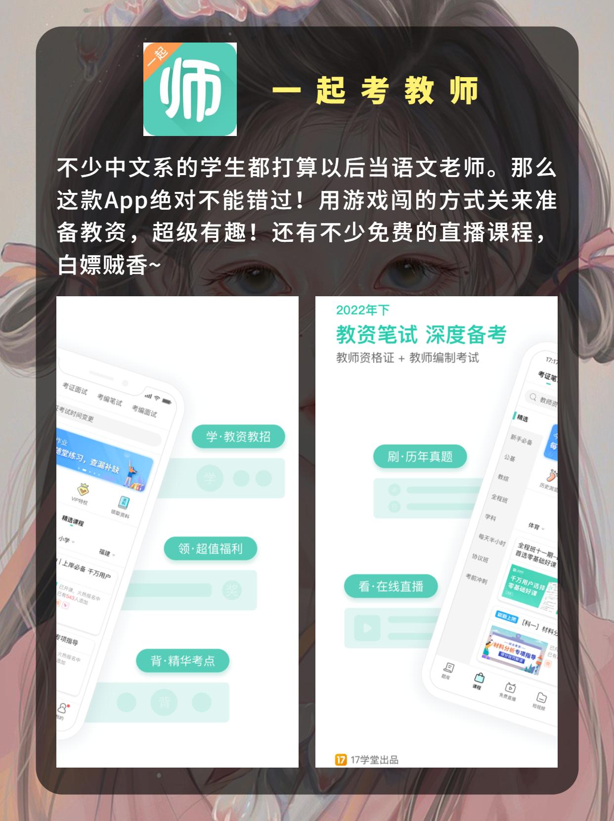 不少中文系的学生都打算以后当语文老师。那么这款App绝对不能错过!用游戏闯的方式关来准备教资,超级有趣!还有不少免费的直播课程,白嫖贼香~