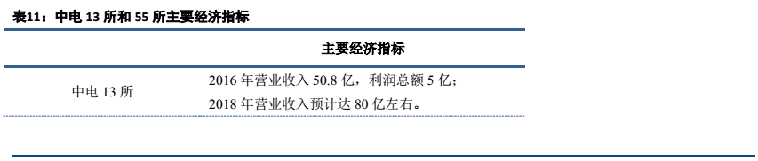 整机企业外购微波组件主要来自中电 13所和55所。中电13所和55所是我国从事半导体技术研究历史最长、规模最大、专业结构配套齐全的骨干研究所,在微波组件领域尤其是半导体微波器件/芯片领域占据国内龙头地位。中13所、55所的下游几乎覆盖全部军工雷达、通信以及电子对抗相关研制生产单位,综合实力最强,市场占有率最高,在营业收入方面,遥遥领先于竞争对手。