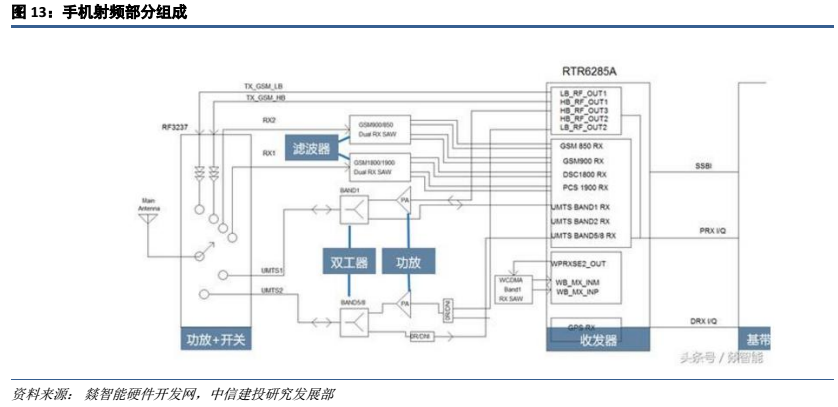 基站最主要的射频器件为滤波器和功放,基站滤波器相关上市公司包括武汉凡谷、大富科技、东山精密,功放主要依赖进口。基站芯片的成熟度和高可靠性和消费级芯片不可同日而语,从开始试用到批量使用需要两年以上的时间,目前在基站射频领域,主要是 Qorvo、Skyworks等厂商。