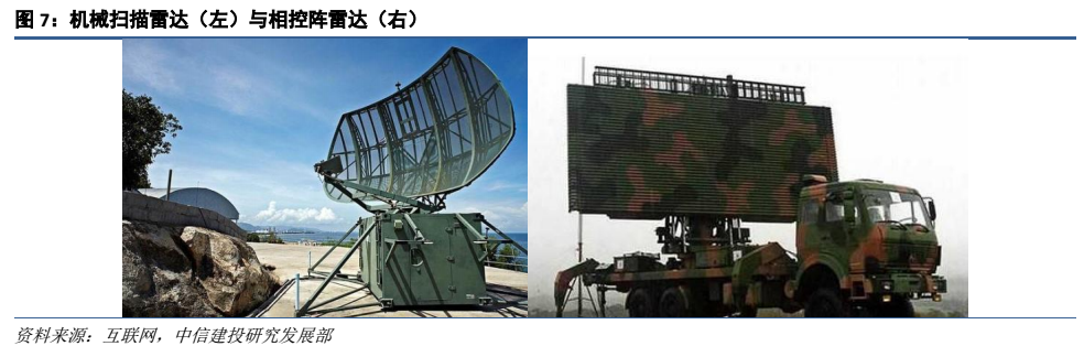在作战应用方面,相控阵雷达与机械扫描雷达相比,具有多目标能力强、可实现多功能等突出优势。随着作战需求的不断提升与技术的不断推动,相控阵雷达已成为主流,但在一些对成本控制要求较高的需求下,机械扫描雷达市场也将长期存在。