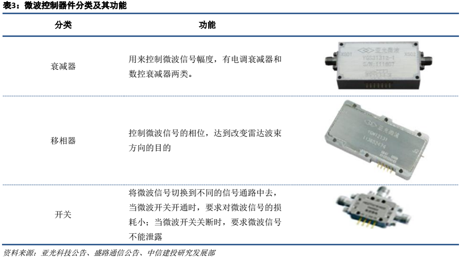 微波控制器件产品用于实现对微波信号的移相、衰减、开关等功能,主要包括移相器、衰减器等,控制器件一般有控制信号输入,用于实时调整其控制参数。