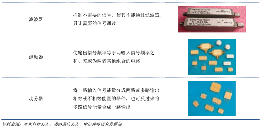 微波器件/ 射频器件是指具备独立功能及性能指标、由多个电路元件构成、具备独立封装结构的电路单元,一般可分为单功能微波电路、微波控制电路两大类,用于实现对微波信号的单一功能,如滤波器、功率放大器等。