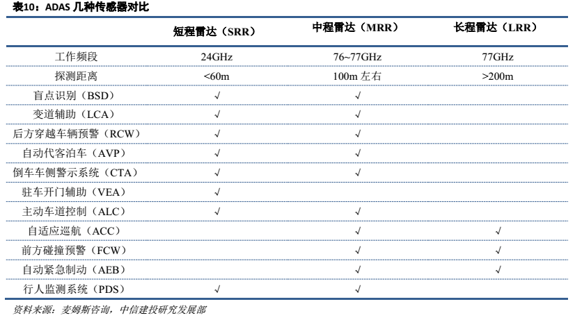 2.2.2ADAS:普及率逐步提升,一辆汽车会装载“长+中+短”多个毫米波雷达