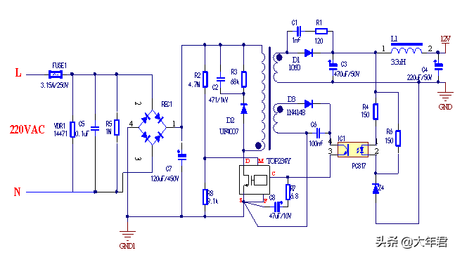 如下图是光耦PC817和稳压管组合而成的开关电源电路,有些开关电源还会与TL431一起构成精度较为高的电路。注意这种光耦一般是线性的光耦,如果要替换的话,需要注意必要的参数,可看这里来选择 关于光耦的类型,如何选择与替换