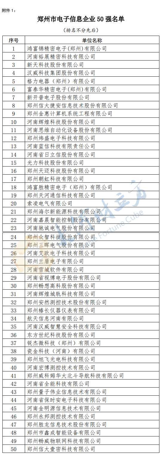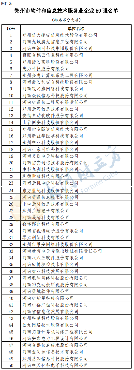 郑州市电子信息企业50强、软件和信息技术服务业企业50强 榜单