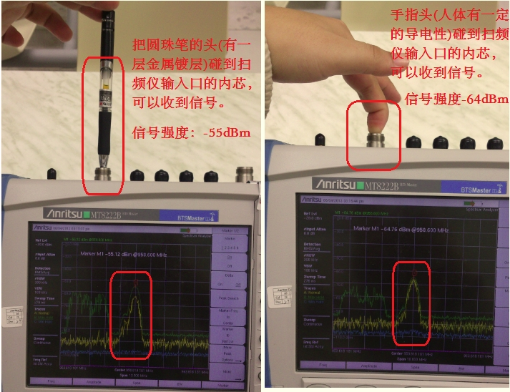 这个事情经过,也说明了,发送和接收无线电也没那么复杂,一个导体就够了,一个金属,甚至人体都可以用来发送或接收无线电,所不同的是,不同的导体所发送接收的无线电强度不同而已。不信就看看如下实测的例子,一个圆珠笔和一个手指头,接收到的信号波形图,如图1。