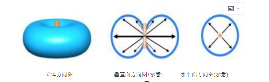 半波振子dipole的立体方向图很像救生圈或面包圈(图6左图),垂直面方向图和水平面方向图分别见下图6中图、右图。