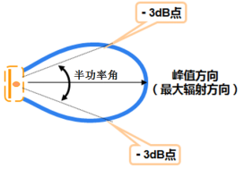 天线辐射出去的能量在各个方向上的大小都不一样,从最大辐射方向往两边能量越来越小,两边能量下降一半(即3dB)的点之间的夹角叫“半功率角”或“波瓣宽度”,如图7所示。
