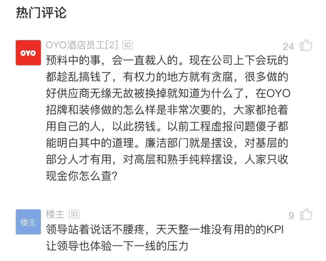“起初OYO的想法是好的,前期靠着烧钱占领市场,后期靠运营团队、导流、再做次级引流就可以把市场做得很好。但为什么会做成现在这样?我所在的部门,从员工到领导,每个月必须要签下1单,否则就要被优化。”迈恩认为,巨大的KPI指标压力让企业运营变得畸形,同时,他接触到的新员工缺乏系统入职培训,也没有统一的技术支持,就连业务主管对产品及绩效的把控也知之甚少。