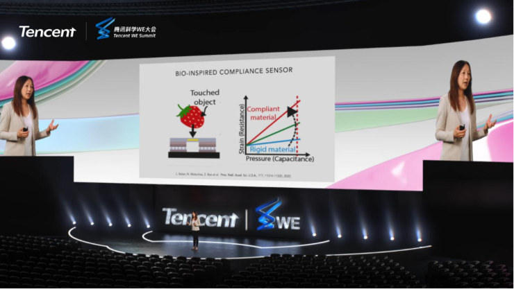 几个月前的腾讯科学 WE 大会上,人造皮肤领域的“材料大师”、著名化学家、斯坦福大学化学工程系系主任鲍哲南在演讲中谈到了实现人造皮肤的三大挑战及对应的重大突破:
