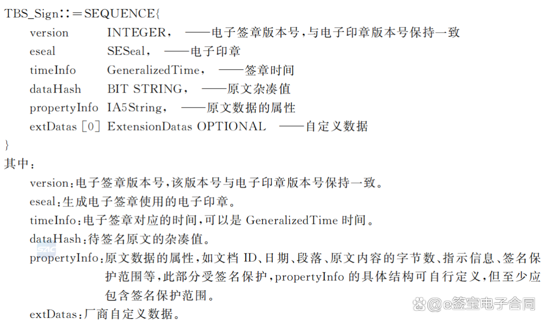 合理运用电子签名技术规范,可以实现上述效果。依据最新的GB/T 38540《安全电子签章密码技术规范》,电子签章数据的具体格式如下: