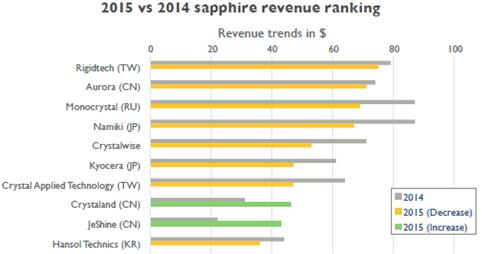> 2015 top 20 sapphire company revenue for core, bricks and wafers