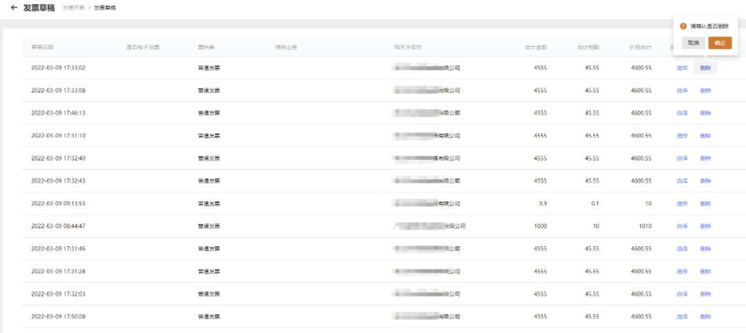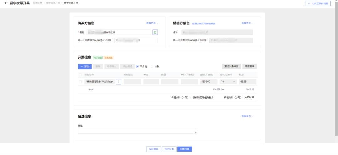 前置条件:在蓝字发票开具页面输入内容点击“保存草稿”保存成功。