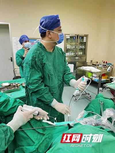 泌尿外科微创技术专家李清博士团队应用“斑马”一次性电子软镜进行手术。