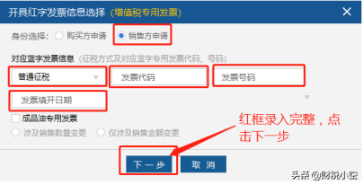 1、点击“发票管理/发票管理首页/红字信息表填开/增值税发票红字信息表填开”或者点击“发票管理/红字信息表/增值税发票红字信息表填开”菜单,弹出红字发票信息表信息选择界面,购买方已认证选择【购买方申请】【已抵扣】只要选择发票种类后,不需要填写对应蓝字发票代码和发票号码,点“下一步”进入填开界面。