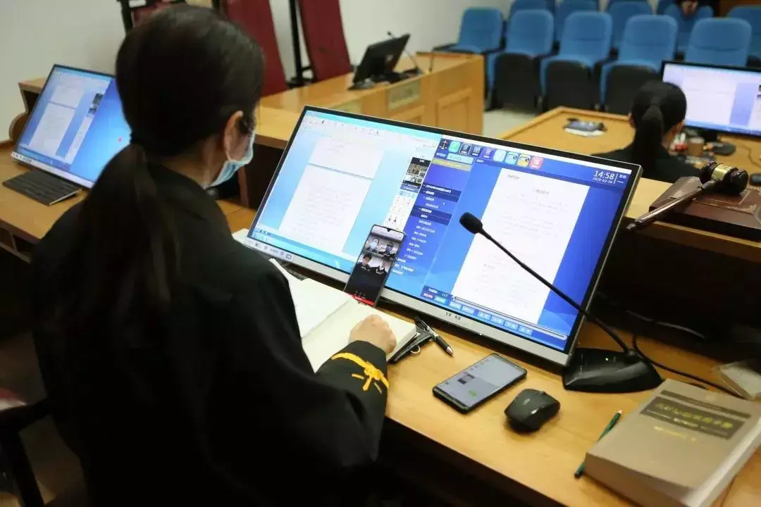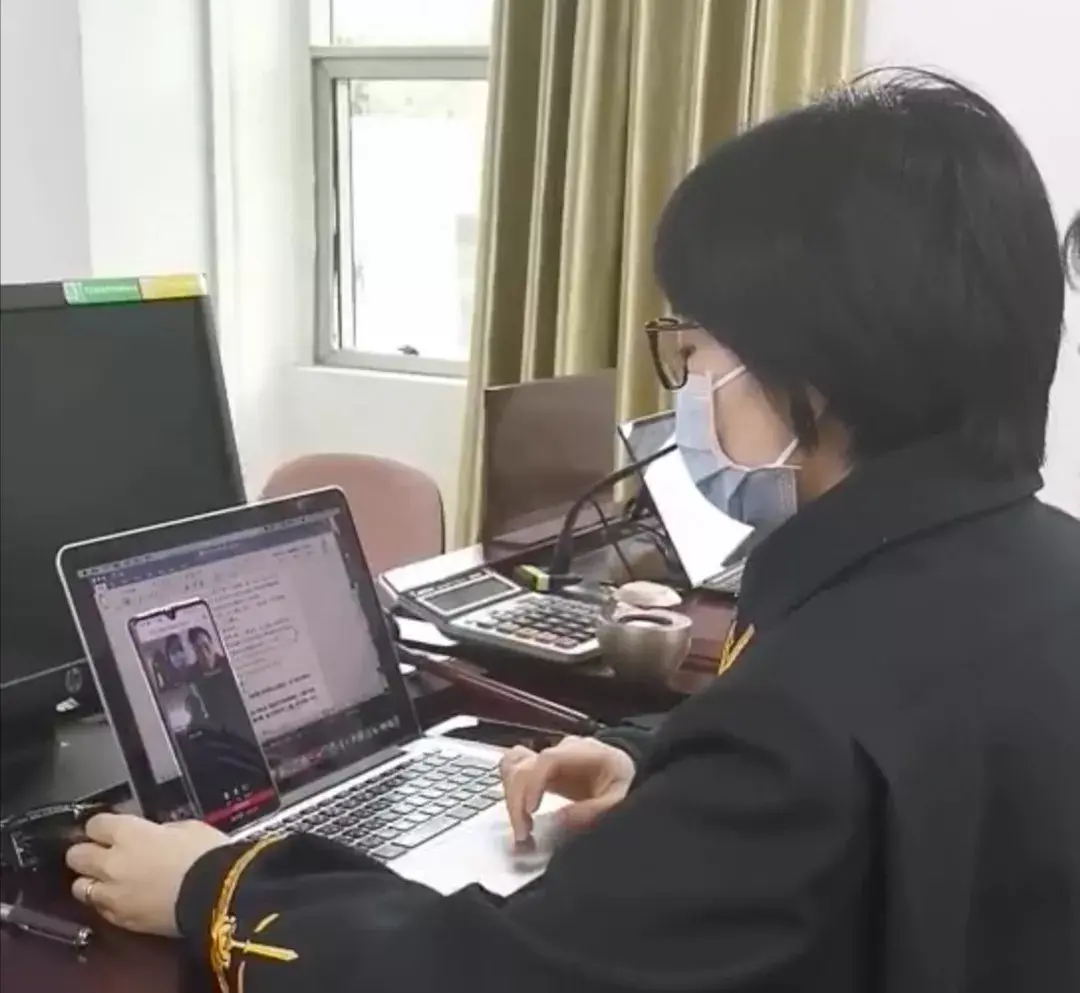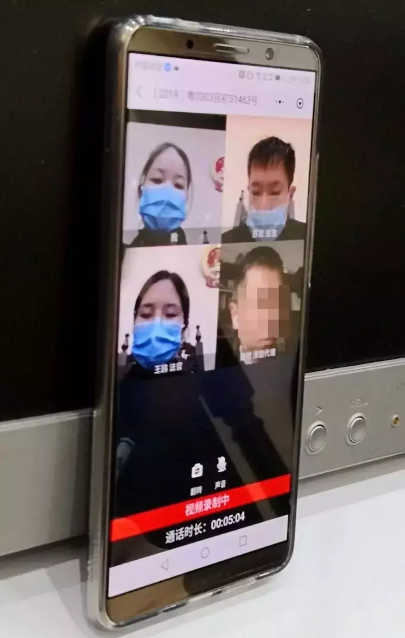2月5日下午,在龙华法院第十七审判庭,审判员方永梅准时到庭并上线,案件双方当事人则在家中利用手机登录“微法院”,足不出户参与了这次在疫情特殊时期的庭审。