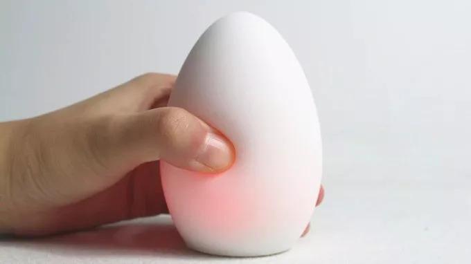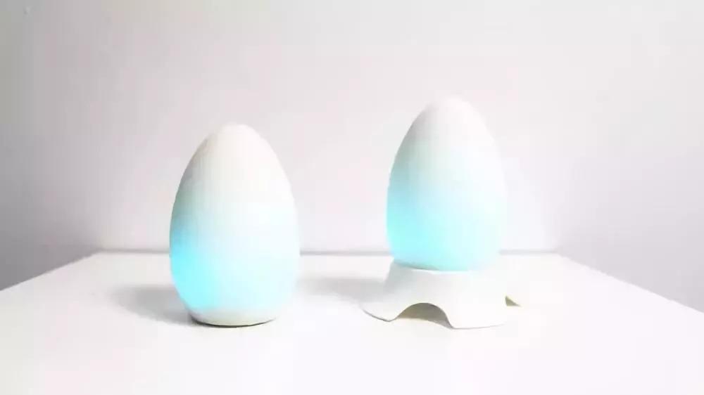 第一眼看到MORNI,很难想象这竟然是一个闹钟。MORNI的外形就是一个剥了壳的鸡蛋的形状,看起来软软的,是因为MORNI采用的低反弹硅制材料。至于时间,MORNI是显示在底部的。