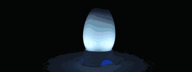 把时间放在底部是因为,闹钟只要管好闹铃就行了。一旦到了设定的闹钟时间,它会用声音与颜色进行提醒,想要关掉它不太容易,你需要至少把它握紧五次,每次的灯光都会变换给你回应,直到你真正的从迷糊中清醒过来,MORNI才会正式闭嘴。