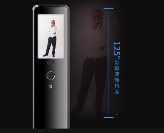 配置了125度垂直成像的猫眼,能将访客从头到脚完整地抓拍记录。内置显示屏,用户可以随时查看室外影像,具有其它智能门锁无法达到的使用体验。