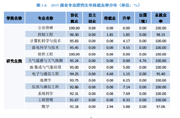 而该学校的王牌专业大气科学的专业,本科阶段虽然就业率低,但是考研率、升学率很高,并且从研究生阶段就业来看,这些相关专业就业还是很好的。如:雷电科学与技术、大气遥感与大气探测、3S集成与气象应用。