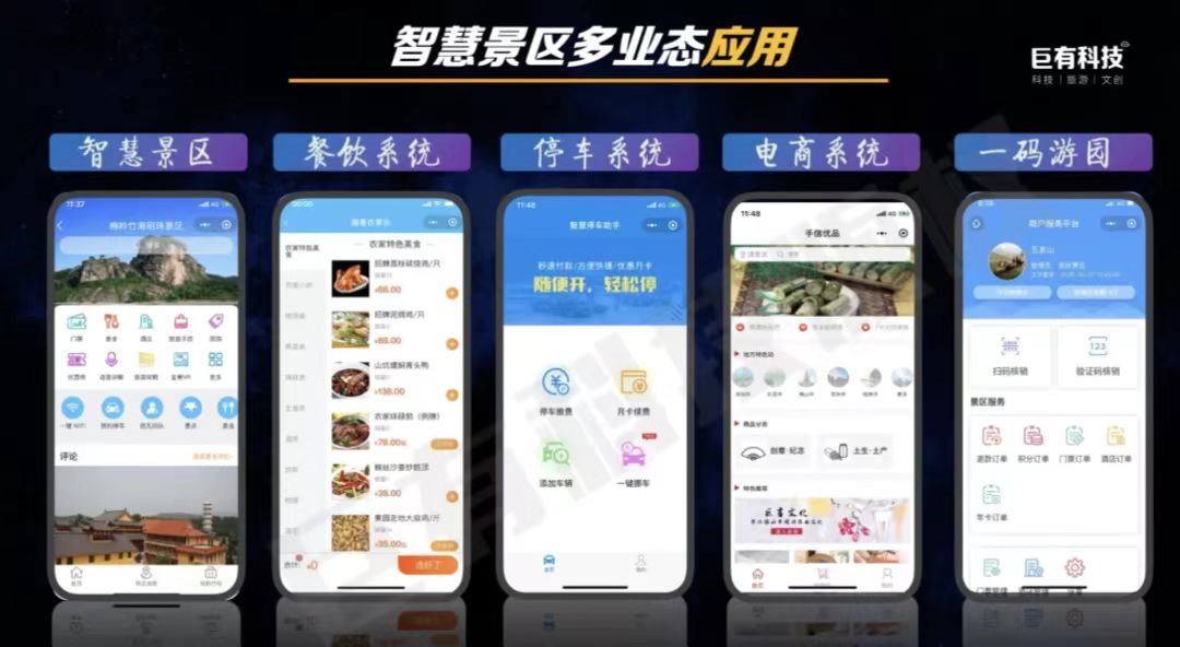 而在智能景区建设的过程中,巨有科技以“科技+旅游”为方向定位,依托全域旅游数据运用,为商家提供底层技术、为游客提供目的地“游前、游中、游后”智慧化一站式服务。